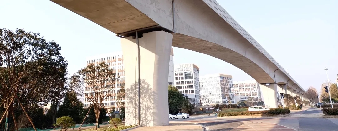2020年開工建設的軌道交通前川線,公司承擔了長達6.4公里的高架區(qū)間軌道交通橋梁設計工作。工程類型復雜,樣式繁多,既有簡支梁、支架現(xiàn)澆連續(xù)梁、大跨變截面懸澆梁等不同橋型結構,又有單線橋、雙線橋、四線橋等不同寬度軌道橋,還有高等減震區(qū)、中等減震區(qū)等不同軌道系統(tǒng),幾乎涵蓋了大部分軌道橋梁類型。在錘煉技術、沉淀經(jīng)驗的同時,公司橋梁設計團隊多次突破自我,刷新多項記錄:大跨變截面連續(xù)梁18處(節(jié)點橋總長約2.6km,占比41%),節(jié)點橋占比為武漢軌道交通高架區(qū)間之最;天騰區(qū)間四線渡線區(qū),現(xiàn)澆連續(xù)箱梁總寬42.5m,是目前武漢最寬的預應力砼現(xiàn)澆箱梁;跨漢孝高速處大跨懸澆梁,單個懸澆節(jié)段達4.5m,創(chuàng)造了目前武漢軌道交通橋梁單節(jié)段懸澆長度之首。