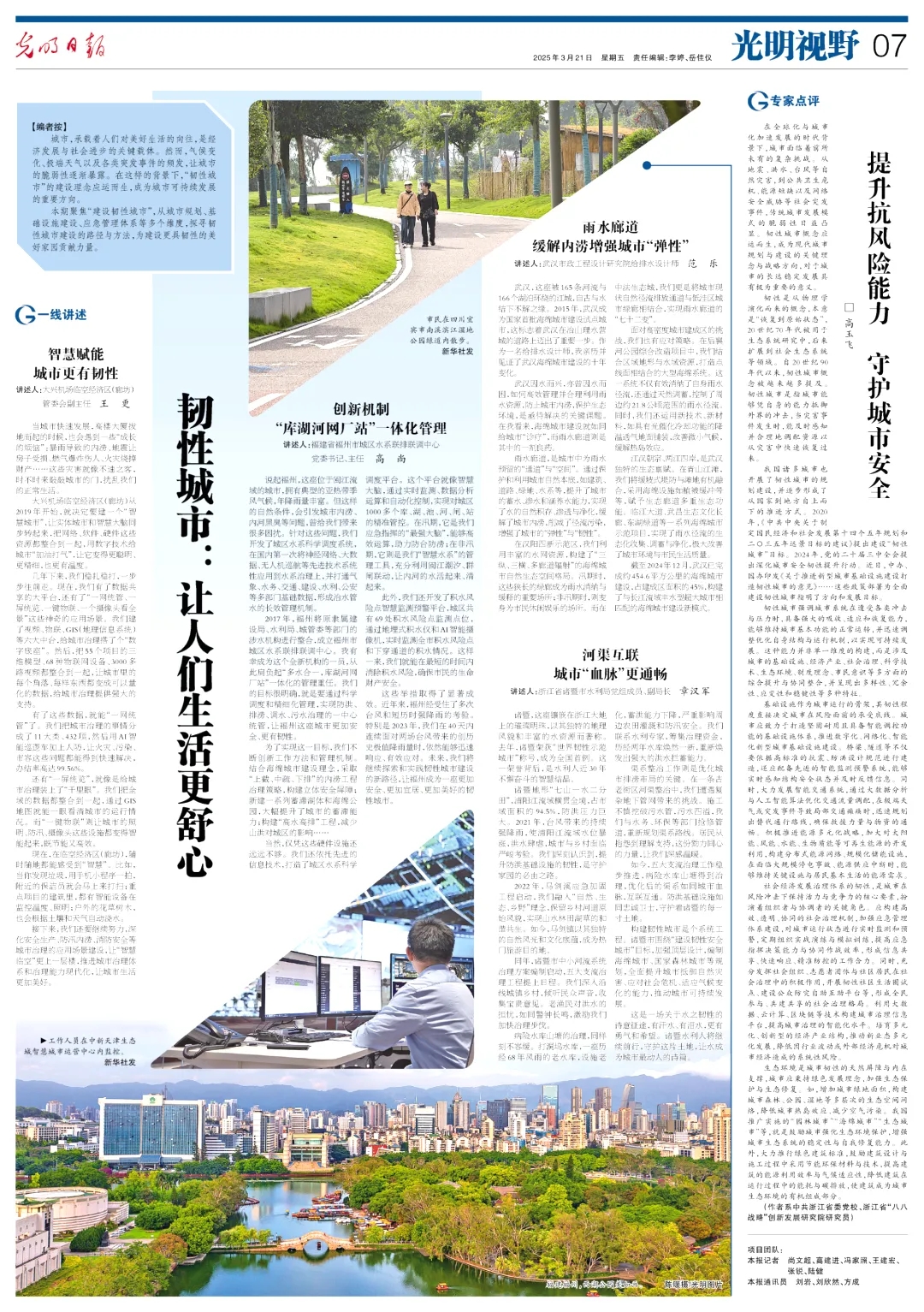 自武漢獲批國(guó)家首批海綿城市建設(shè)試點(diǎn)城市以來(lái),武漢市政院一直致力于武漢海綿城市建設(shè),海綿城市從概念到試點(diǎn),從試點(diǎn)到全域推進(jìn),從項(xiàng)目示范到系統(tǒng)治理,在城市內(nèi)澇防治、消除黑臭水體、保護(hù)城市生態(tài)、提升環(huán)境品質(zhì)等方面發(fā)揮了顯著作用,海綿城市建設(shè)讓家園更加韌性、宜居、智慧。3月21日,公司規(guī)劃研究事業(yè)部給排水主任工程師范樂(lè)受光明日?qǐng)?bào)邀請(qǐng),講述《雨水廊道 緩解內(nèi)澇增強(qiáng)城市“彈性”》。
