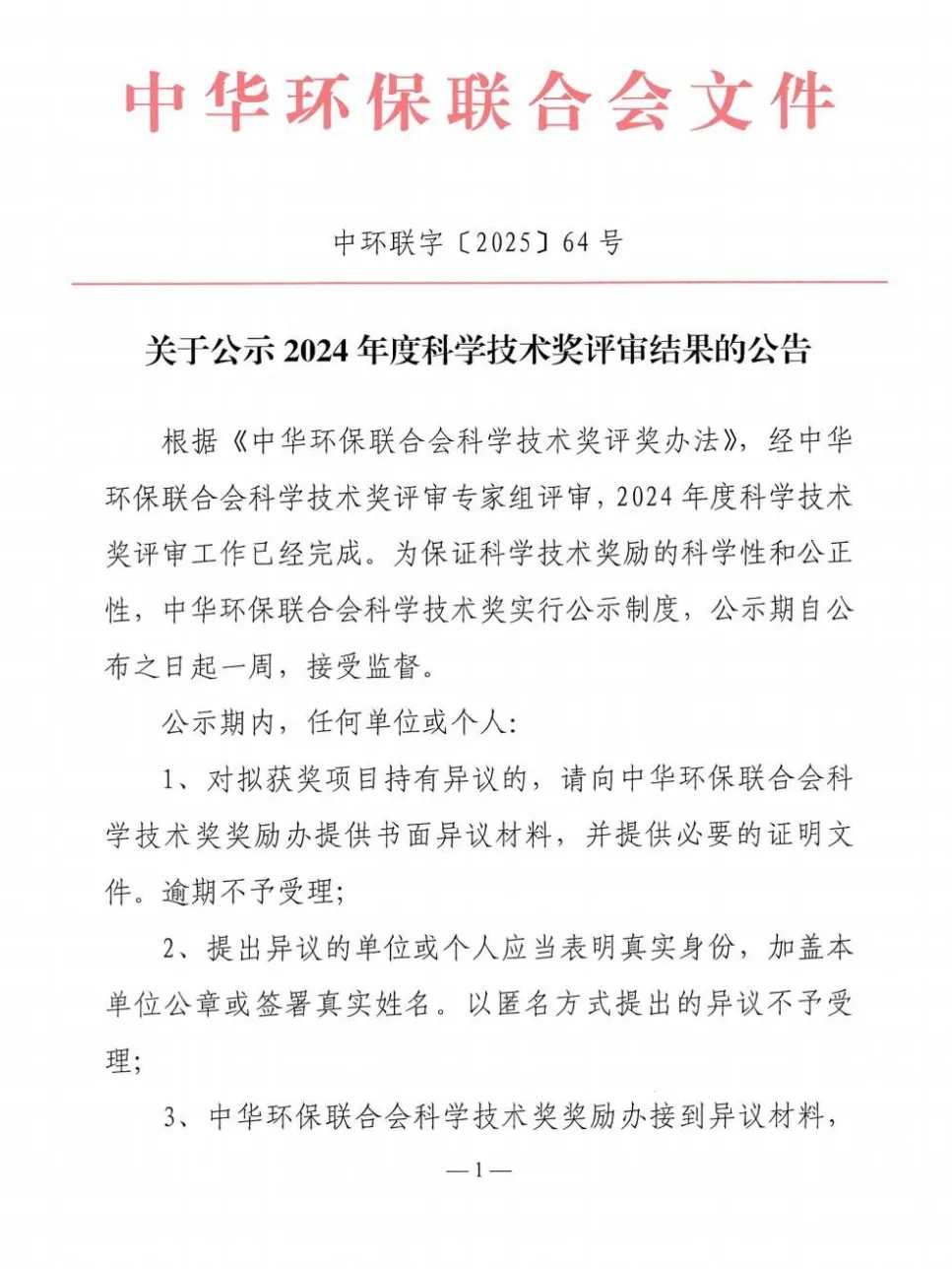 ? ? 中華環(huán)保聯(lián)合會是經(jīng)中華人民共和國國務院批準,民政部注冊,國家環(huán)保總局主管,由熱心環(huán)保事業(yè)的人士、企業(yè)、事業(yè)單位自愿結成的、非營利性的、全國性的社會組織。“中華環(huán)保聯(lián)合會科學技術獎”是在科技部正式備案的全國性獎項。
