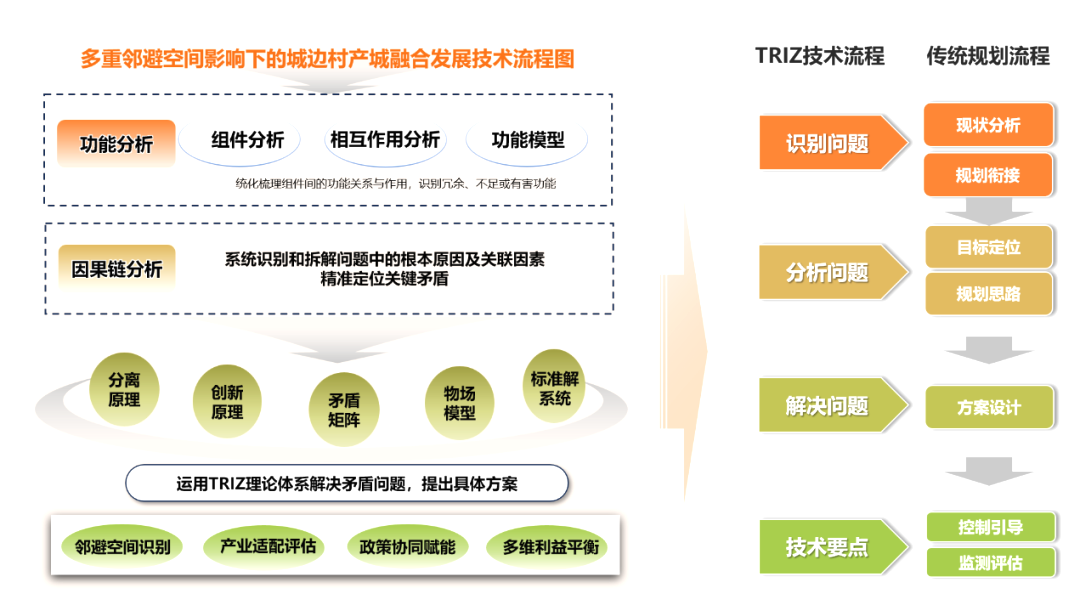 “基于TRIZ創(chuàng)新理論的一種多重鄰避空間影響下的城邊村產(chǎn)城融合發(fā)展規(guī)劃技術(shù)”項(xiàng)目基于寧波北侖新碶街道村莊規(guī)劃編制實(shí)踐,對城邊村產(chǎn)城融合發(fā)展的深層矛盾進(jìn)行科學(xué)拆解,精準(zhǔn)識別出“空間排他、物理割裂、功能受限、發(fā)展制約”四大關(guān)鍵矛盾。項(xiàng)目提出的“化鄰避為鄰利”技術(shù)方案,有效應(yīng)對土地供需不平衡、資源保護(hù)利用不協(xié)調(diào)等問題,提出“破解約束、產(chǎn)業(yè)升級、植入IP”的產(chǎn)業(yè)發(fā)展路徑,成功解決多重鄰避空間制約下的規(guī)劃發(fā)展難題,為新碶街道量身擘畫了“碶彩稻田”鄉(xiāng)村振興推進(jìn)示范區(qū)和“稻田+”都市田園鄉(xiāng)村示范區(qū)的規(guī)劃藍(lán)圖。