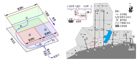 下墊面產(chǎn)流示意圖(左)和黃家湖污水廠應(yīng)用效果圖(右)