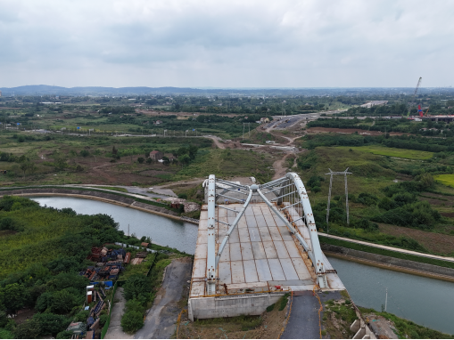 ? ? 生態(tài)優(yōu)先,構筑和諧跨越景觀。道路跨越重要的漳河水庫總干渠,設計創(chuàng)新采用90米下承式簡支鋼箱拱橋,造型寓意“雙龍戲珠”,在確保水源安全與灌溉功能不受影響的前提下,打造出震撼的視覺地標,實現(xiàn)了功能、生態(tài)與景觀的有機融合。