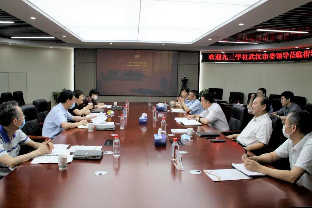 2020年6月19日下午,武漢市政協(xié)副主席、九三學社武漢市委主委梁鳴,九三學社武漢市委副主委郭剛艷,九三學社武漢市委秘書長陳勝利,江漢區(qū)工委主委栗曉紅等蒞臨公司調(diào)研指導,公司黨委書記蔡輝、董事長武興治及公司九三學社社員參加了座談交流。