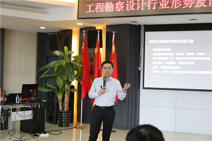 2020年7月24日,公司在西二樓會(huì)議室舉行工程勘察設(shè)計(jì)行業(yè)形勢(shì)及國(guó)資改革政策環(huán)境分析培訓(xùn)會(huì),邀請(qǐng)?zhí)鞆?qiáng)管理顧問創(chuàng)始人、總經(jīng)理祝波善對(duì)當(dāng)前行業(yè)發(fā)展形勢(shì)及相關(guān)政策進(jìn)行解讀。公司領(lǐng)導(dǎo)班子、總經(jīng)理助理、公司副總工程師及公司所屬部門(單位)正副職管理人員參加了培訓(xùn)。