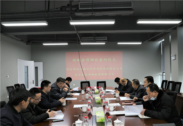2021年3月3日下午,武漢市政設(shè)計(jì)院與武大巨成結(jié)構(gòu)股份有限公司在漢簽署戰(zhàn)略合作框架協(xié)議,雙方將充分發(fā)揮各自優(yōu)勢(shì),創(chuàng)新合作模式,拓寬合作渠道,在結(jié)構(gòu)加固技術(shù)領(lǐng)域,針對(duì)新設(shè)備、新材料、新工藝的應(yīng)用開(kāi)展交流合作。武漢市政設(shè)計(jì)院總經(jīng)理姚華、副總經(jīng)理陳建斌、總經(jīng)理助理呂錦剛與武大巨成公司董事長(zhǎng)高作平、總經(jīng)理萬(wàn)雄衛(wèi)、副總經(jīng)理廖杰洪、副總經(jīng)理張暢及相關(guān)人員出席了簽約儀式。