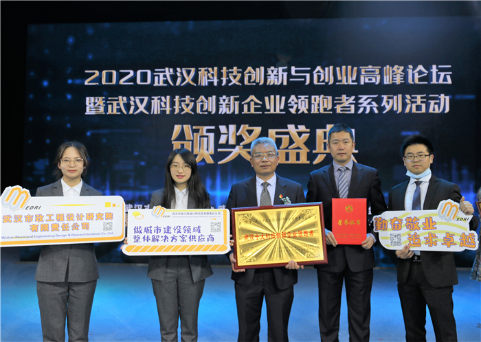 2021年4月15日,武漢創(chuàng)新與創(chuàng)業(yè)高峰論壇暨武漢科技創(chuàng)新企業(yè)領(lǐng)跑者系列活動頒獎盛典在武漢電視臺演播廳隆重舉行,武漢市政設(shè)計院榮膺“2020年度武漢十大科技創(chuàng)新企業(yè)領(lǐng)跑者”稱號,公司副總經(jīng)理周俊作為嘉賓上臺領(lǐng)獎。