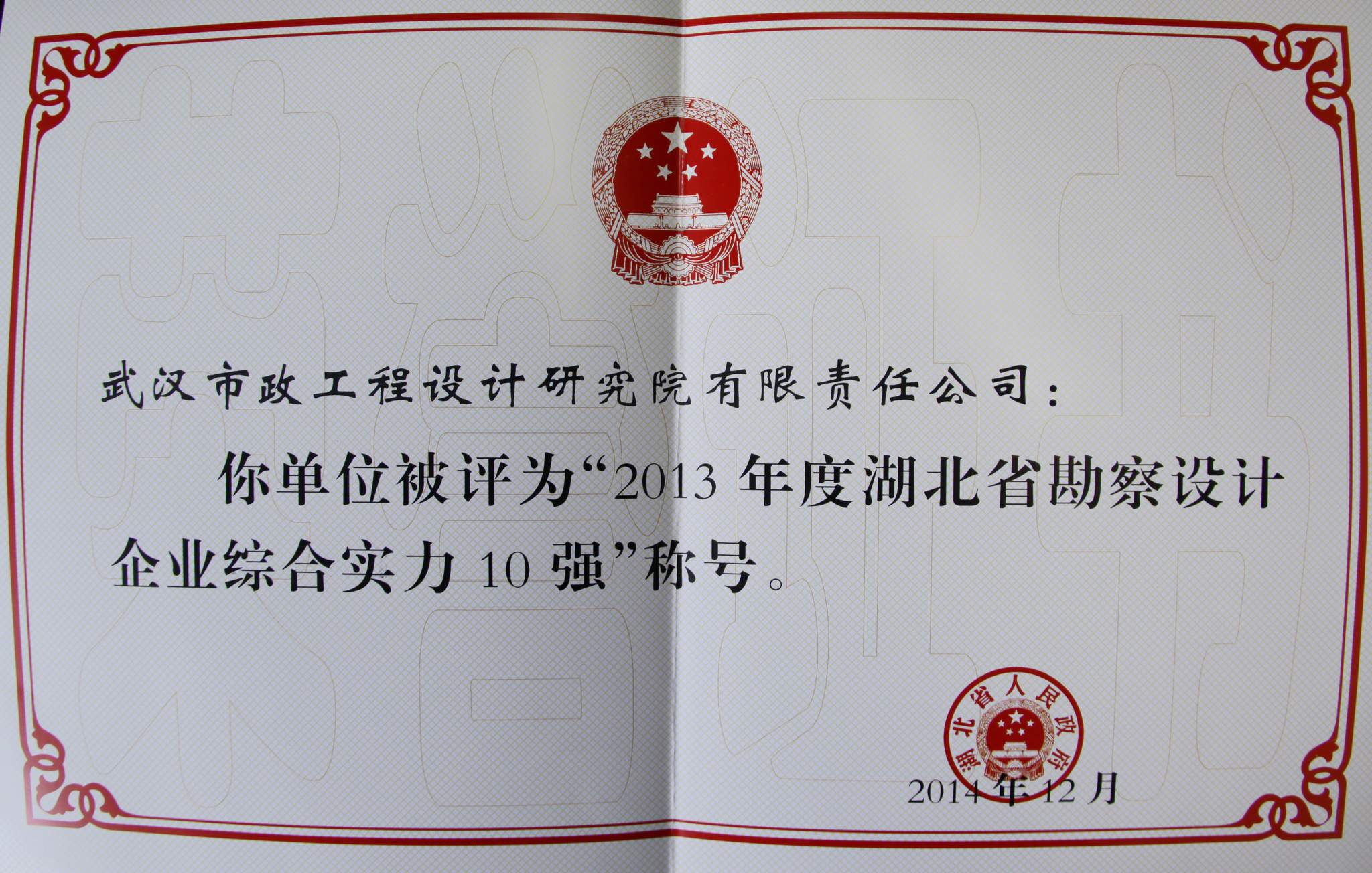 ??? 2月12日,湖北省住房城鄉(xiāng)建設(shè)工作會(huì)議暨黨風(fēng)廉政建設(shè)工作會(huì)議在洪山禮堂召開,會(huì)議正式下發(fā)文件,對(duì)2013年度湖北省勘察設(shè)計(jì)企業(yè)綜合實(shí)力十強(qiáng)進(jìn)行表彰,公司憑借近年來(lái)在行業(yè)中的突出表現(xiàn)而榜上有名。