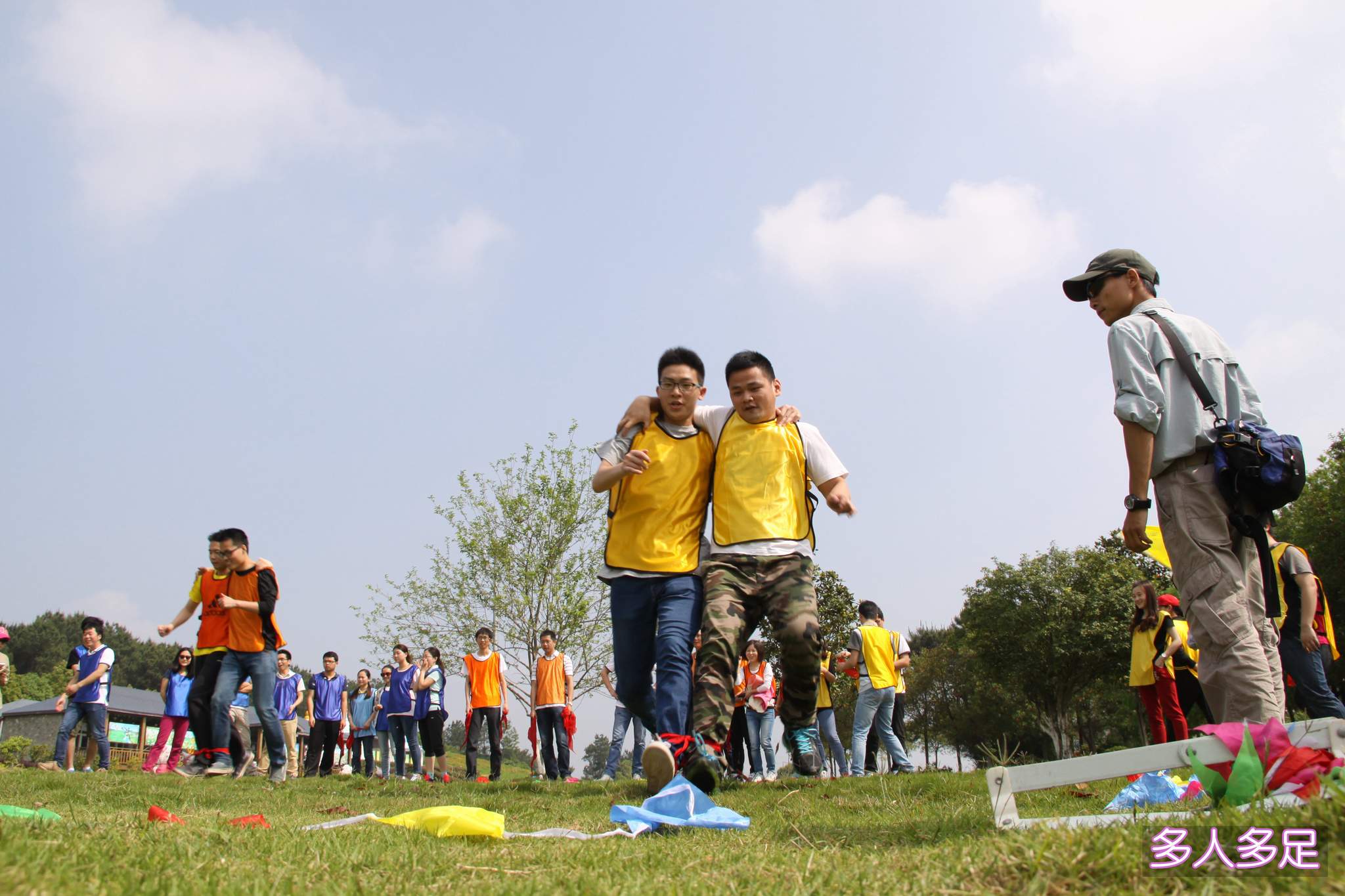 ??? 在上午進(jìn)行的場地項(xiàng)目中,青年員工在經(jīng)過簡短的熱身后被分成了三支隊(duì)伍,在確定各自的隊(duì)伍名稱、隊(duì)旗、口號、隊(duì)歌后,活動項(xiàng)目正式開始。在第一項(xiàng)“多人多足”的項(xiàng)目中,每支隊(duì)伍的隊(duì)員們通力合作,默契配合,均以較好的成績完成了活動內(nèi)容。