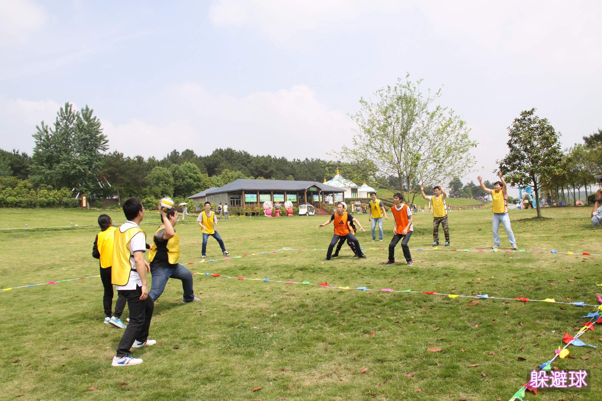 ??? 上午的最后一個項(xiàng)目是“躲避球”,每支隊(duì)伍選派1名女隊(duì)員和6名男隊(duì)員參賽,比賽雙方用排球向?qū)Ψ酵稊S,先擊中女隊(duì)員的一方獲勝,這個項(xiàng)目考驗(yàn)的是隊(duì)伍的團(tuán)隊(duì)精神和奉獻(xiàn)精神,而隊(duì)員們也都很好的完成了挑戰(zhàn)。