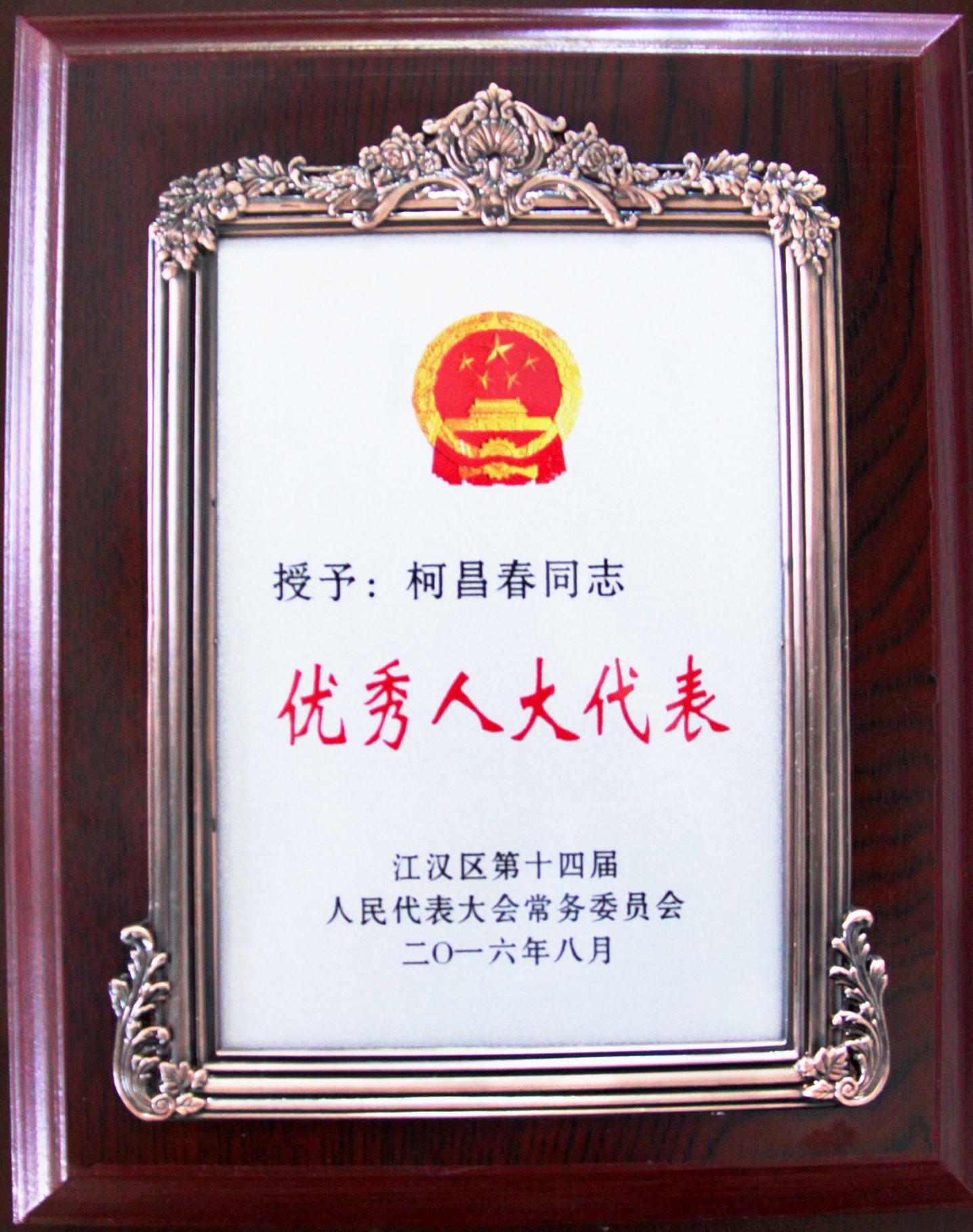??? 近日,一則喜報(bào)從江漢區(qū)人大傳來,公司董事長柯昌春同志在擔(dān)任江漢區(qū)人大代表期間積極為江漢區(qū)的建設(shè)和發(fā)展建言獻(xiàn)策,被江漢區(qū)人大授予“優(yōu)秀人大代表”榮譽(yù)稱號。