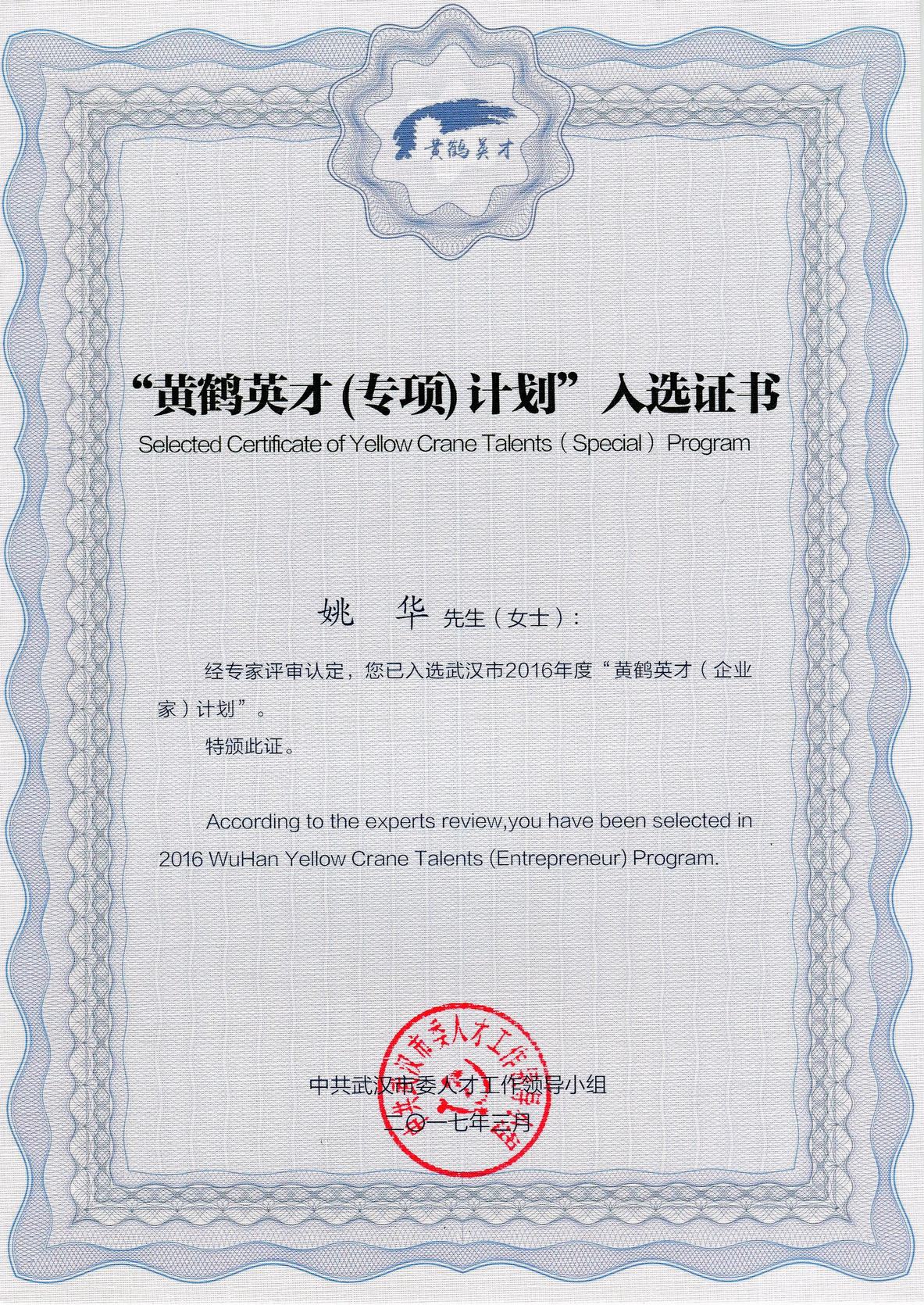 熱烈祝賀姚華同志入選武漢市“黃鶴英才(企業(yè)家)”計劃