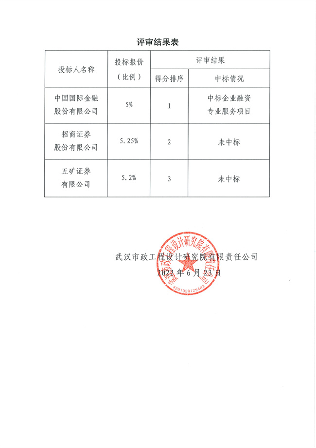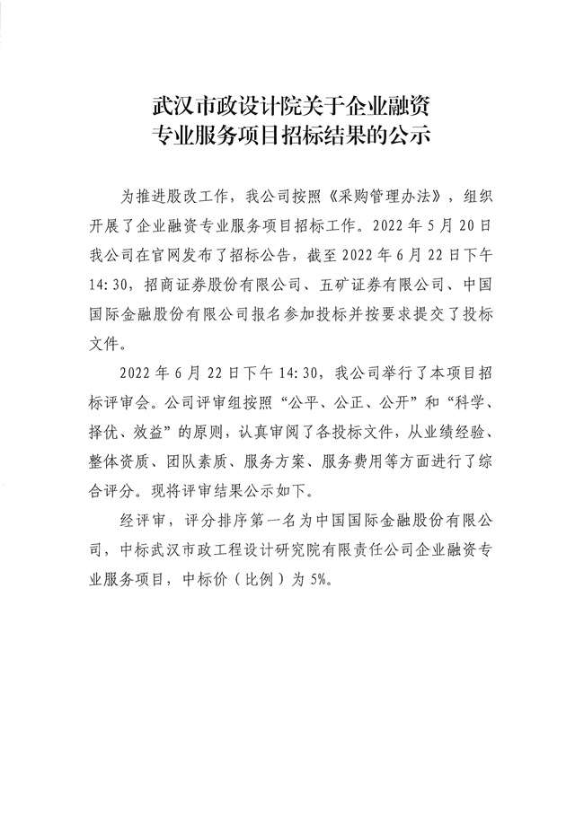 關(guān)于企業(yè)融資專業(yè)服務項目招標結(jié)果的公示